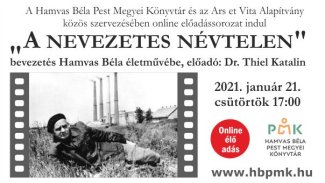 A Hamvas Béla Pest Megyei Könyvtár és az Ars et Vita alapítvány közös szervezésében online előadássorozat indul "A nevezetes névtelen" bevezetés Hamvas Béla életművébe címmel. Előadó: Dr. Thiel Katalin