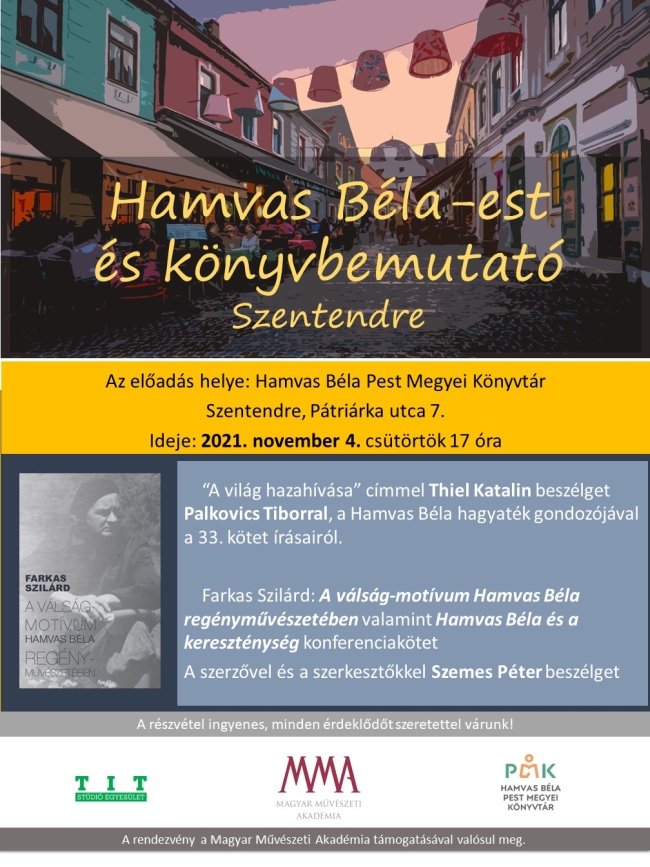 Helyszín: Hamvas Béla Pest Megyei Könyvtár, Szentendre, Pátriárka utca 7.