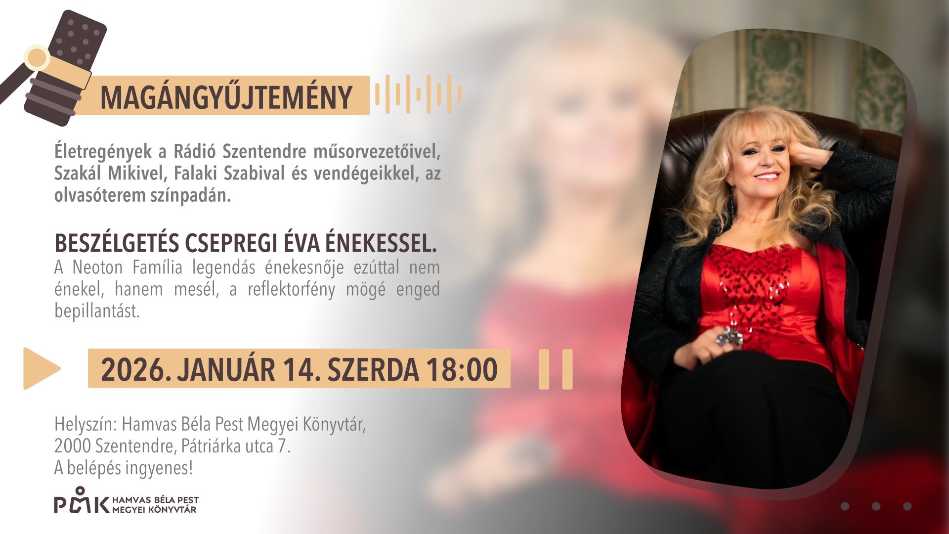 Helyszín: Hamvas Béla Pest Megyei Könyvtár, 2000 Szentendre, Pátriárka utca 7.