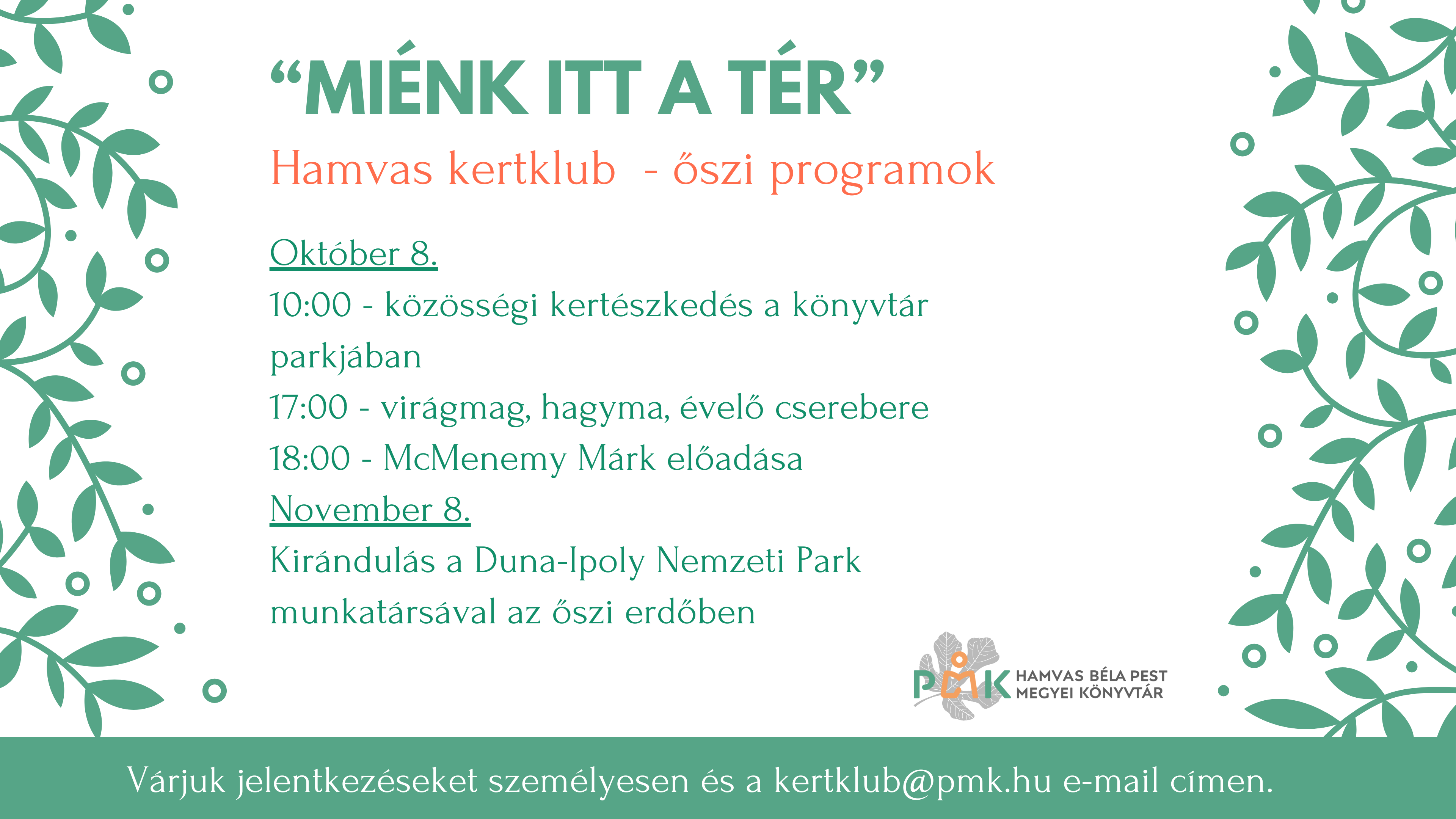 A séta regisztrációköteles, szállítási igényeteket is itt jelezhetitek: kertklub@pmk.hu