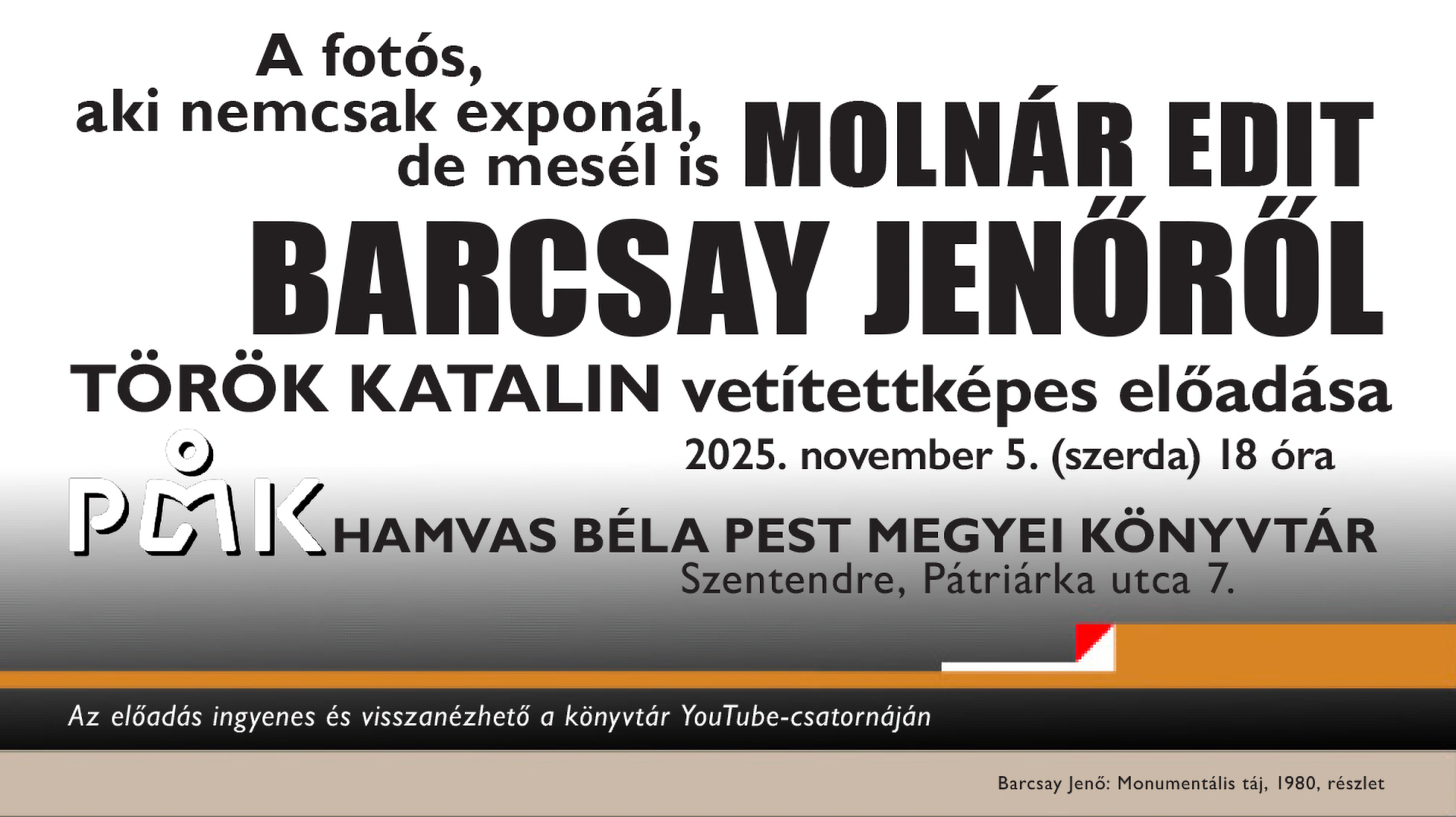 Dátum 2025.11.05. - 18:00 Török Katalin vetítettképes előadása.Időpont: 2025. november 5. szerda 18 óraHelyszín: Hamvas Béla Pest Megyei Könyvtár, 2000 Szentendre, Pátriárka utca 7.A belépés ingyenes!