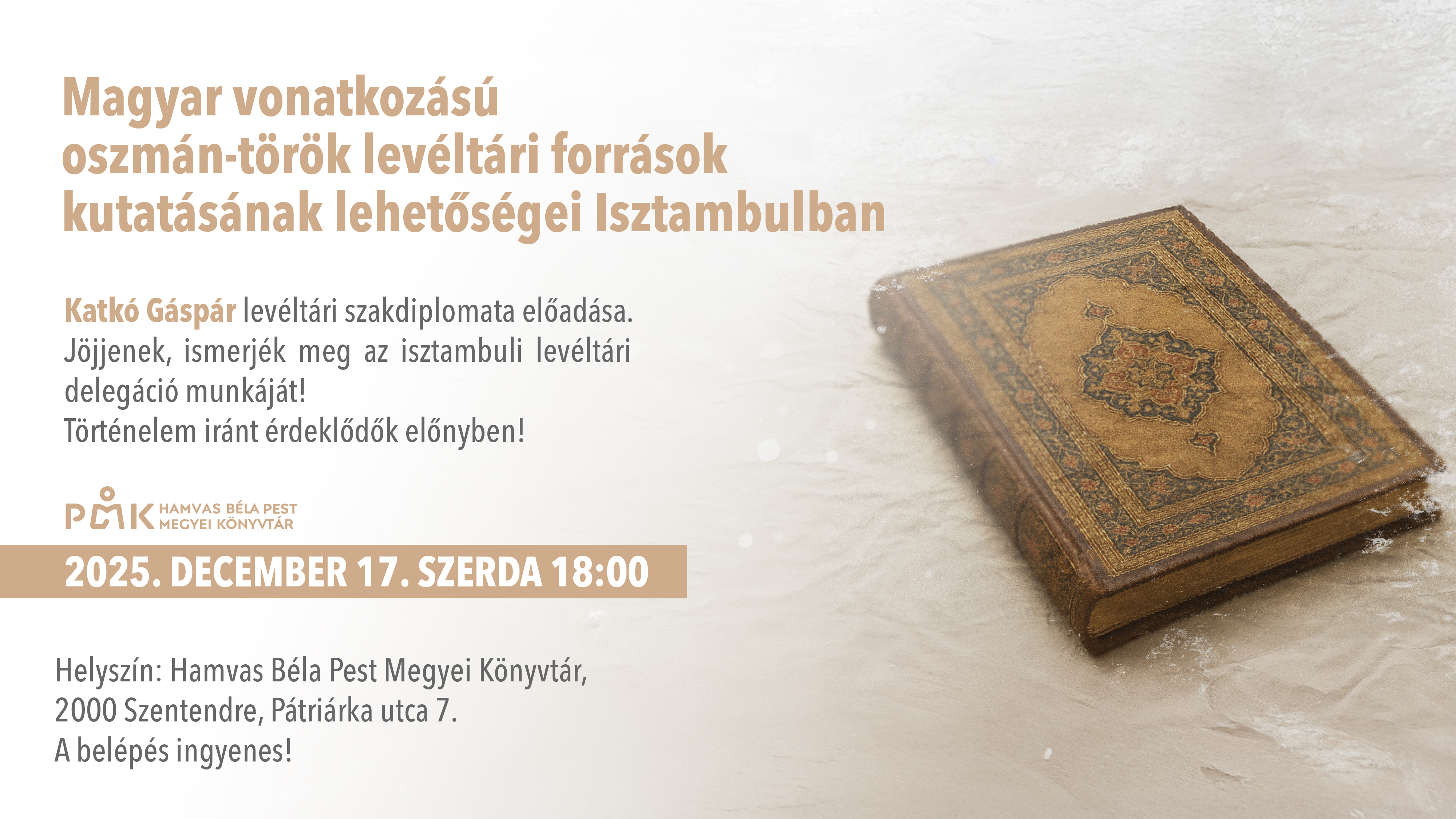 Helyszín: Hamvas Béla Pest Megyei Könyvtár, 2000 Szentendre, Pátriárka utca 7.
