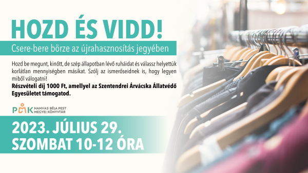 Hozd be megunt, kinőtt, de szép állapotban lévő ruháidat és válassz helyettük korlátlan mennyiségben másikat. Szólj az ismerőseidnek is, hogy legyen miből válogatni!