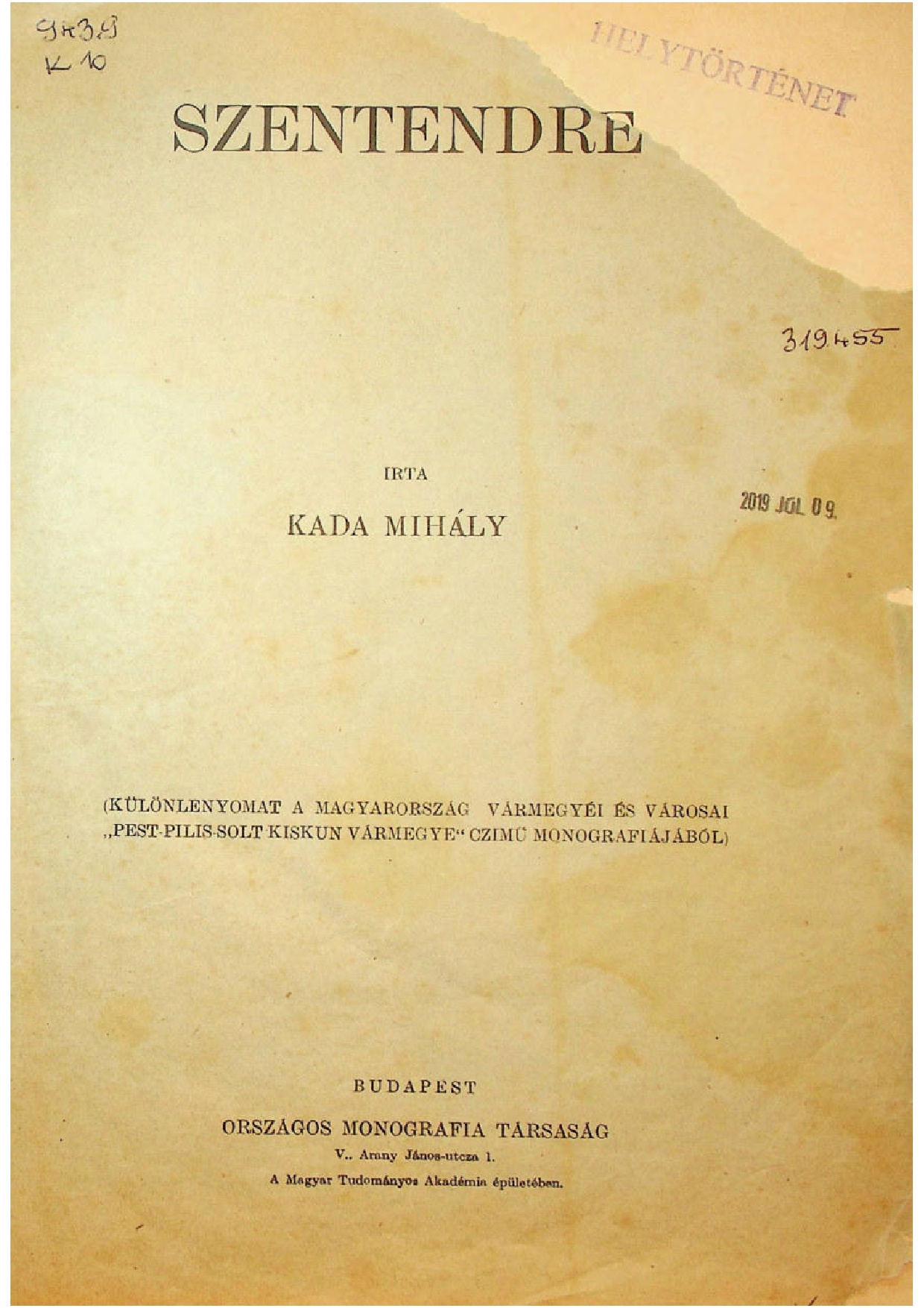 Különlenyomat a Magyarország vármegyéi és városai "Pest-Pilis-Solt Kiskun vármegye" czimű monografiájából. - Digitális változata elérhető: https://mek.oszk.hu/09500/09536/html/0016/15.html