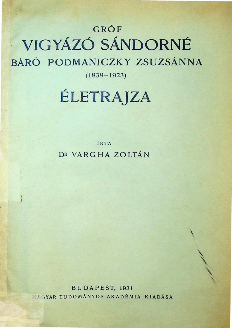Gróf Vigyázó Sándorné báró PodGörzsönyi VarghZoltán