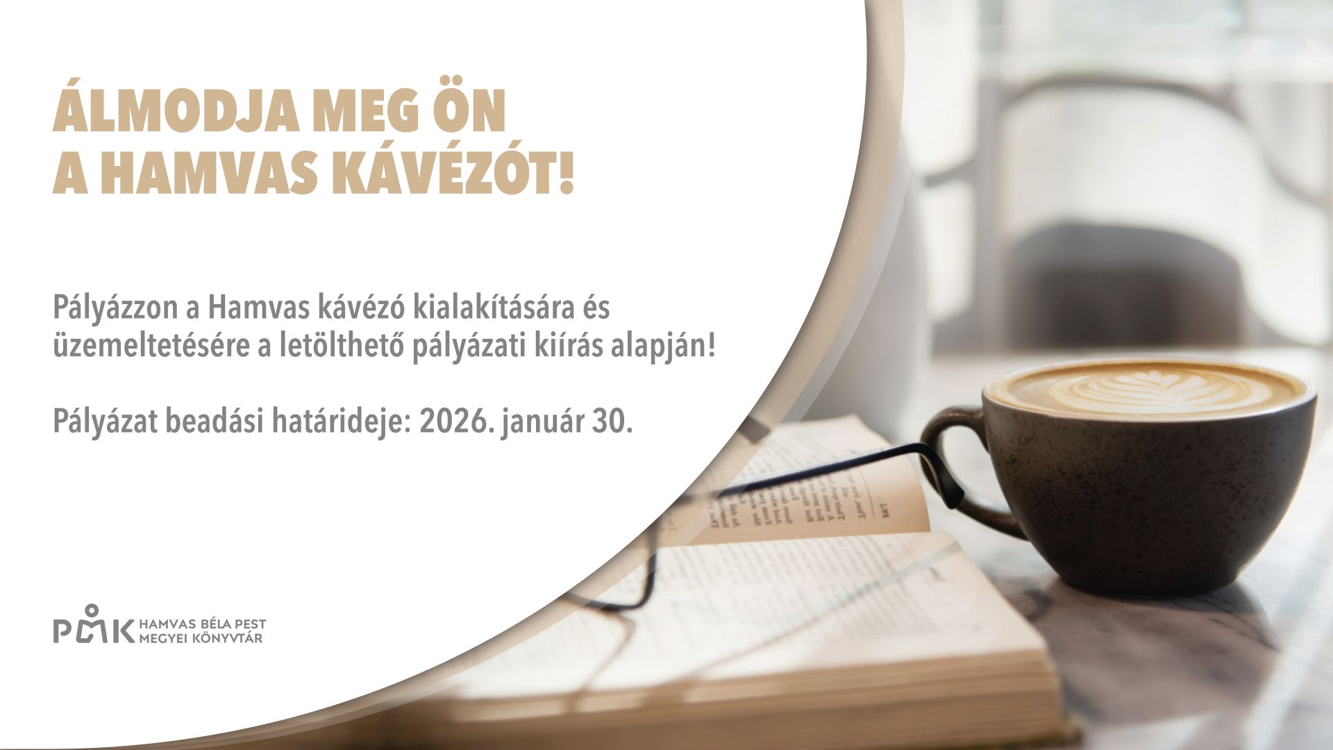 Pályázzon a Hamvas kávézó kialakítására és üzemeltetésére a letölthető pályázati kiírás alapján!Pályázati kiírásMelléklet Pályázat beadási határideje: 2026. január 30.
