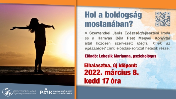A Szentendrei Járás Egészségfejlesztési Iroda és a Hamvas Béla Pest Megyei Könyvtár által közösen szervezett Mégis, kinek az egészsége? című előadás-sorozat hetedik része.