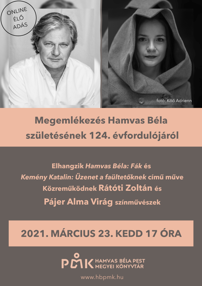Közreműködnek Rátóti Zoltán és Pájer Alma Virág színművészek.
