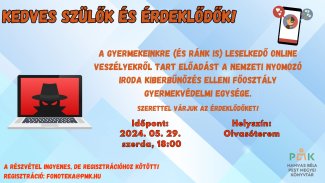 A gyermekeinkre (és ránk is) leselkedő online veszélyekről tart előadást a Nemzeti Nyomozó Iroda Kiberbűnözés Elleni Főosztály Gyermekvédelmi Egysége.