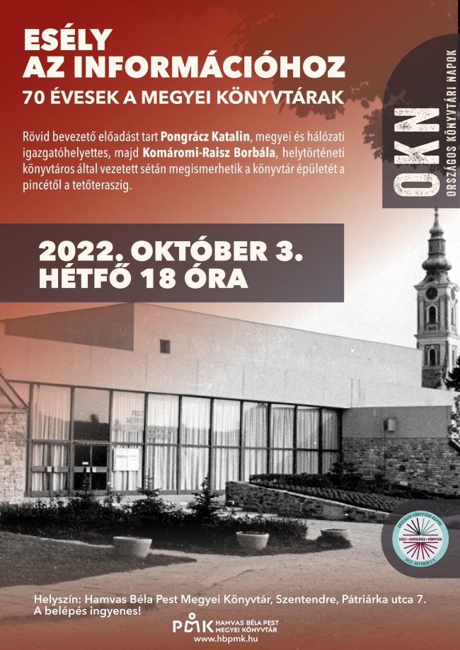 Helyszín: Hamvas Béla Pest Megyei Könyvtár, olvasóterem, 2000 Szentendre, Pátriárka u. 7.