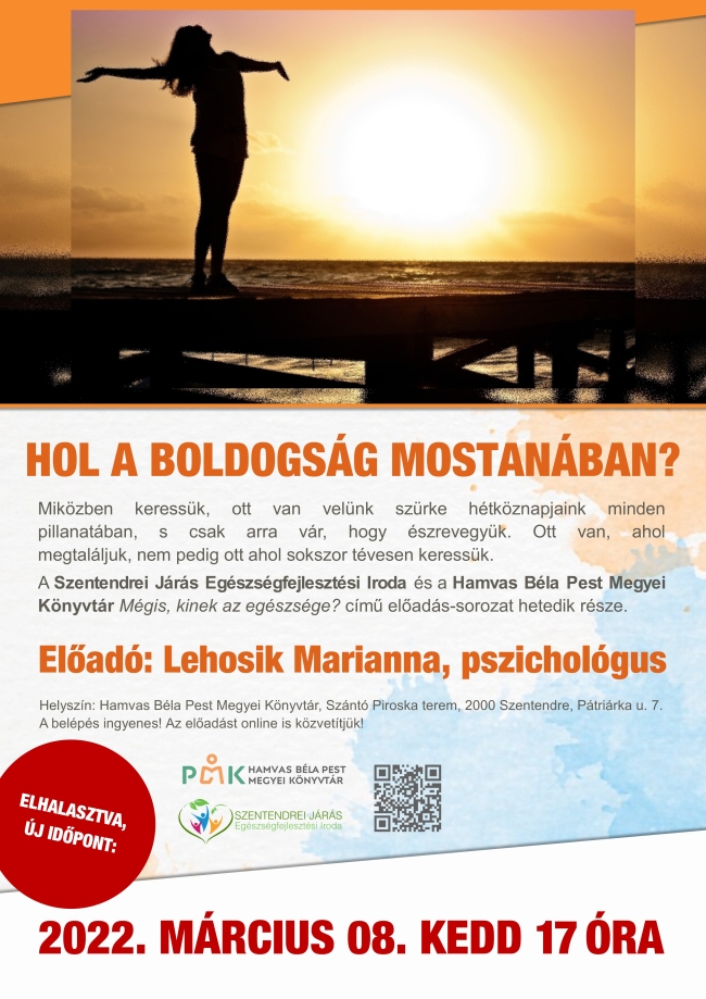 A Szentendrei Járás Egészségfejlesztési Iroda és a Hamvas Béla Pest Megyei Könyvtár által közösen szervezett Mégis, kinek az egészsége? című előadás-sorozat hetedik része.