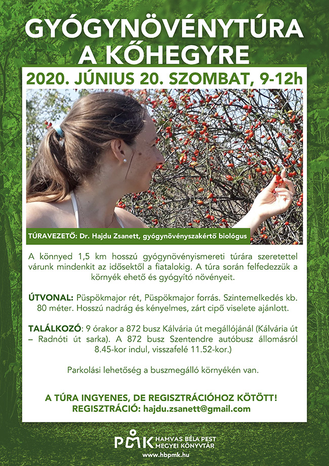 A könnyed 1,5 km hosszú gyógynövényismereti túrára szeretettel várunk mindenkit az idősektől a fiatalokig. A túra során felfedezzük a környék ehető és gyógyító növényeit.