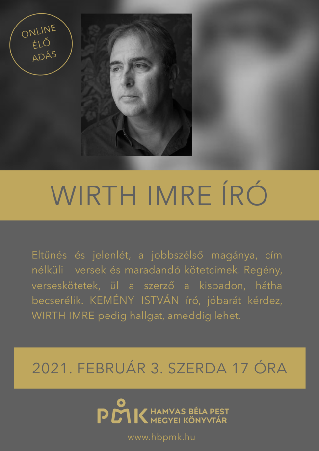 Eltűnés és jelenlét, a jobbszélső magánya, cím nélküli versek és maradandó kötetcímek. Regény, verseskötetek, ül a szerző a kispadon, hátha becserélik. Kemény István író, jóbarát kérdez, Wirth Imre pedig hallgat, ameddig lehet.