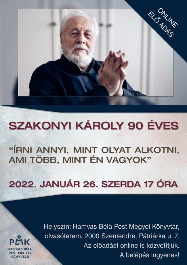 Helyszín: Hamvas Béla Pest Megyei Könyvtár, olvasóterem, 2000 Szentendre, Pátriárka u. 7.