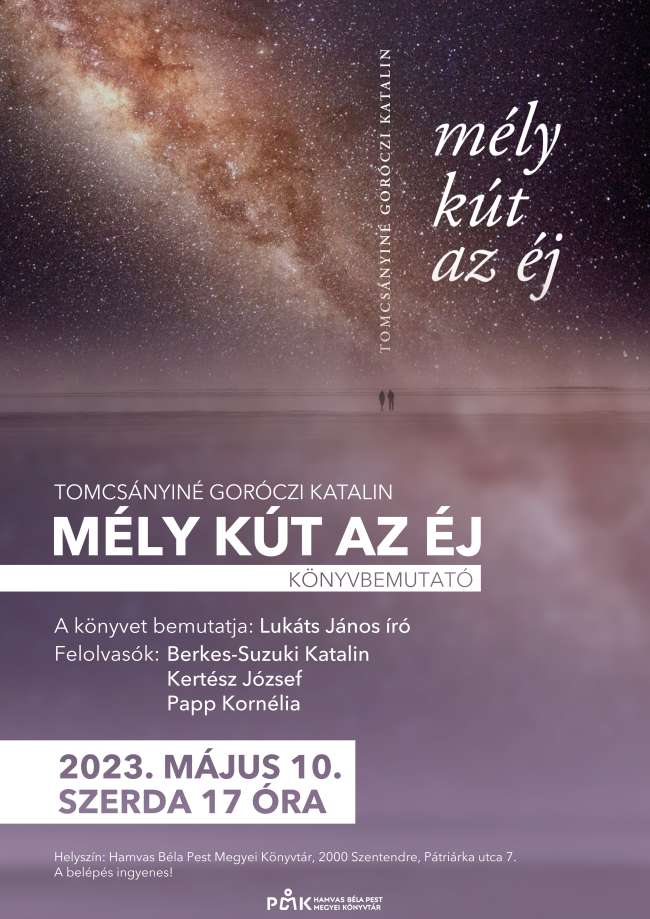 Szeretettel meghívjuk Önt és kedves családját Tomcsányiné Goróczi Katalin: Mély kút az éj című könyvének bemutatójára.