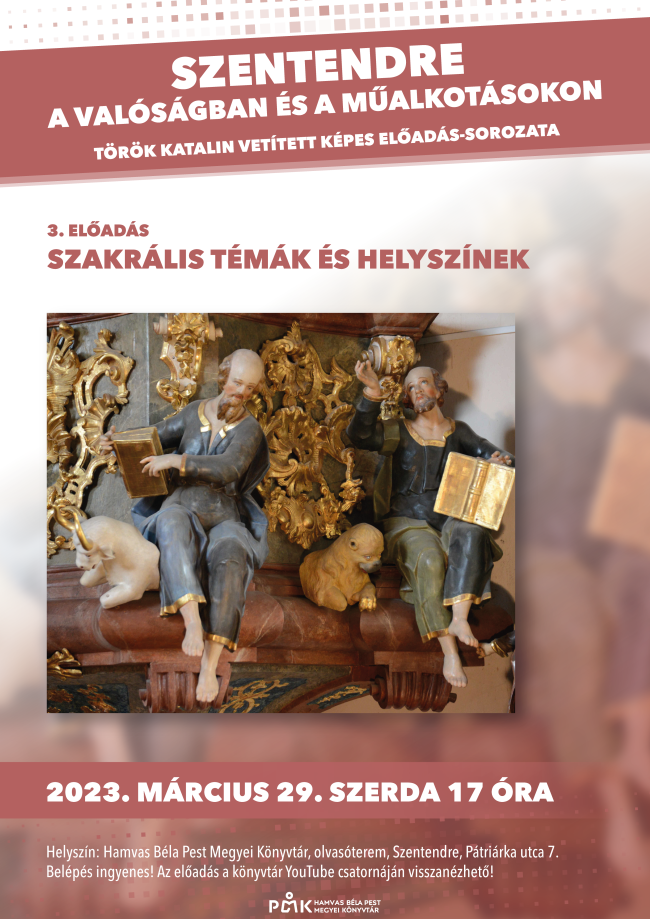 Helyszín: Hamvas Béla Pest Megyei Könyvtár, olvasóterem, 2000 Szentendre, Pátriárka u. 7.
