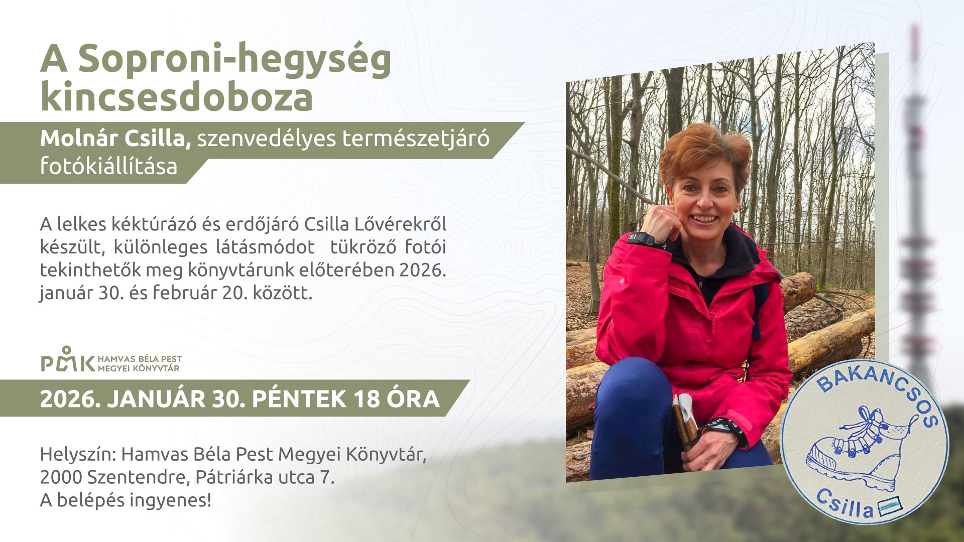 A lelkes kéktúrázó és erdőjáró Csilla Lővérekről készült, különleges látásmódot tükröző fotói tekinthetők meg könyvtárunk előterében 2026. január 30. és február 20. között.