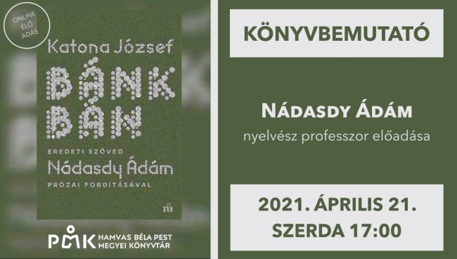 Nádasdy Ádám mai nyelvre fordította Katona József Bánk bán című művét (Magvető 2019). Előadásában az eredeti és a modern fordítás különbségeiről beszél.
