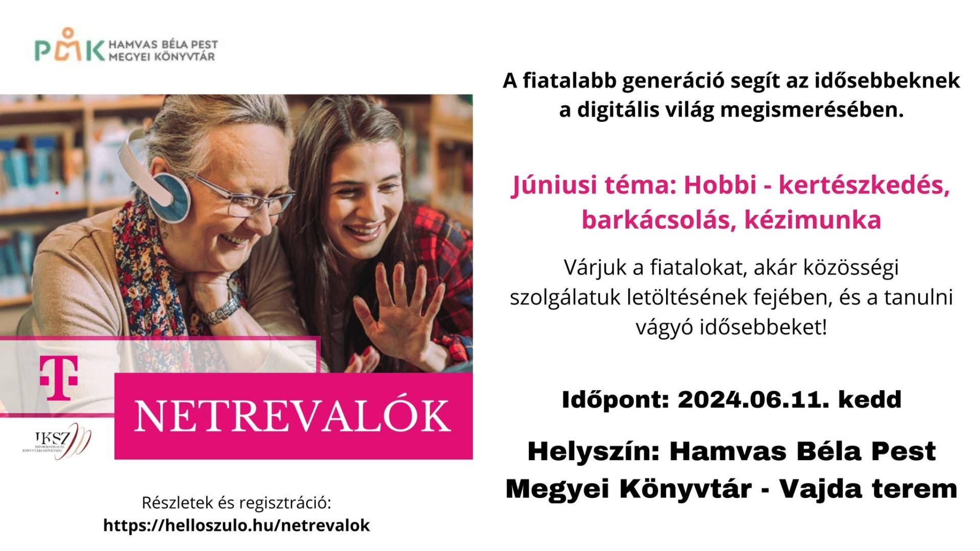 Könyvtárunk csatlakozott a Telekom HU Netrevalók programjához, amelynek keretein belül a fiatalabb generáció segít az idősebbeknek a digitális világ megismerésében.