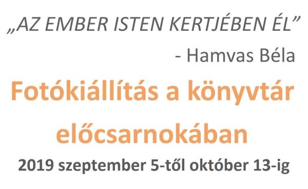 A Hamvas Béla Pest Megyei Könyvtár és az Ars et Vita Alapítvány Hamvas Béla halálának 50. évfordulója alkalmából fotópályázatot hirdetett 2018-ban. A sikeresnek ítélt alkotások láthatóak szeptember 5-től október 13-ig könyvtárunkban.