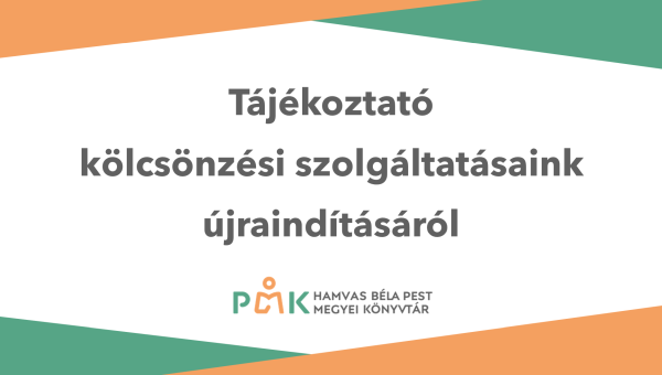 - Továbbra is fogadjuk a kolcsonzes@pmk.hu email címen vagy a +36-26-310-222/109 telefonszámon leadott könyv, CD és DVD rendeléseket.