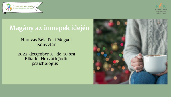 Köztudott, hogy az ünnepek gyakran magánnyal sújtják az embereket. Különösen az idősebb korosztály érintett, de hatással van/lehet a többi korosztály képviselőire is. A magány könnyen depresszív állapothoz, szorongáshoz, kétségbeeséshez, sajnos öngyilkossághoz is vezethet. A mindennapi egyedüllétet valahogyan el lehet viselni, de a nagy ünnepek idején pusztító magányosnak lenni. Az előadás arra hivatott, hogy segítséget nyújtson, módszereket ajánljon mind a magányos embereknek, mind azok számára, akik idős szüleiknek -akkor is, ha távol élnek-, rokonaiknak, a környezetükben élő, egyedülálló embereknek szeretnének támogatást nyújtani.