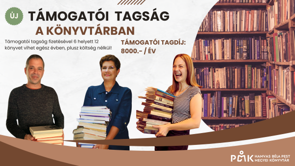 Támogatói tagság fizetésével 6 helyett 12 könyvet vihet egész évben, plusz költség nélkül!Támogatói tagdíj: 8000 Ft/év