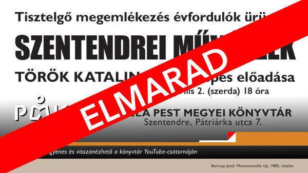 Dátum 2025.04.02. - 18:00 Tisztelgő megemlékezés évfordulók ürügyénTörök Katalin előadása Időpont: 2025. április 2. szerda 18 óraHelyszín: Hamvas Béla Pest Megyei Könyvtár, 2000 Szentendre, Pátriárka utca 7.A belépés ingyenes!