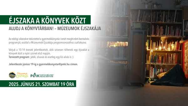 Várjuk a 10-14 évesek jelentkezését, akik szívesen töltenek egy éjszakát a könyvek közt a nyári szünet első napján.
