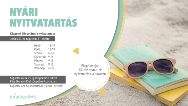 Központi könyvtárunk nyitvatartása június 30. és augusztus 31. között:
