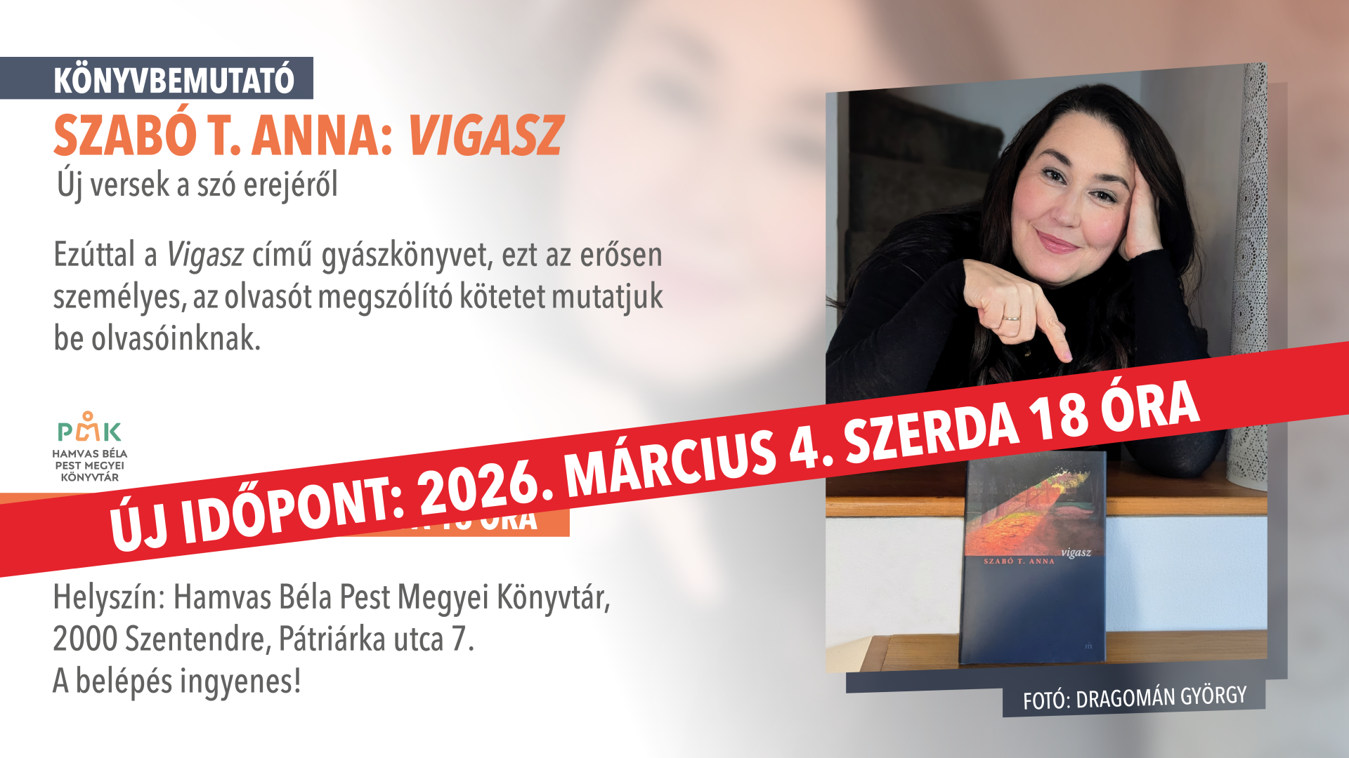 Helyszín: Hamvas Béla Pest Megyei Könyvtár, 2000 Szentendre, Pátriárka utca 7.