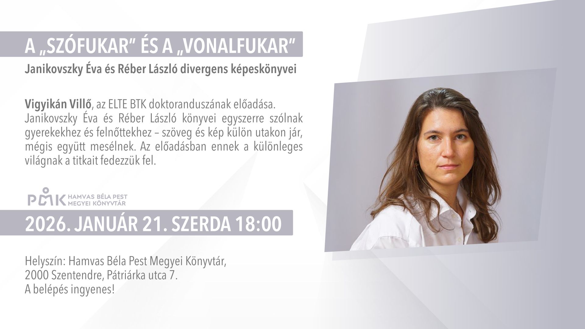 Janikovszky Éva és Réber László könyvei egyszerre szólnak gyerekekhez és felnőttekhez – szöveg és kép külön utakon jár, mégis együtt mesélnek. Az előadásban ennek a különleges világnak a titkait fedezzük fel.